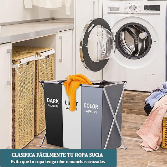 AHORRAS $ 42.900Cesto Triple Plegable Para Ropa Sucia - Calidad Premium®